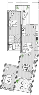 Ce dispositif, rendu possible par une trame rationnelle entre chaque séjour traversant, permet de transformer un T4 en T2 ou inversement, selon les évolutions