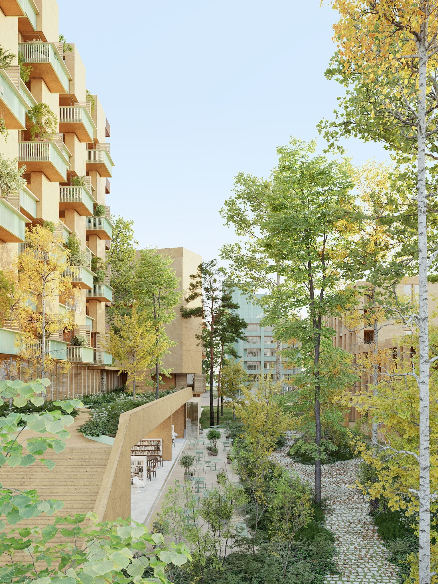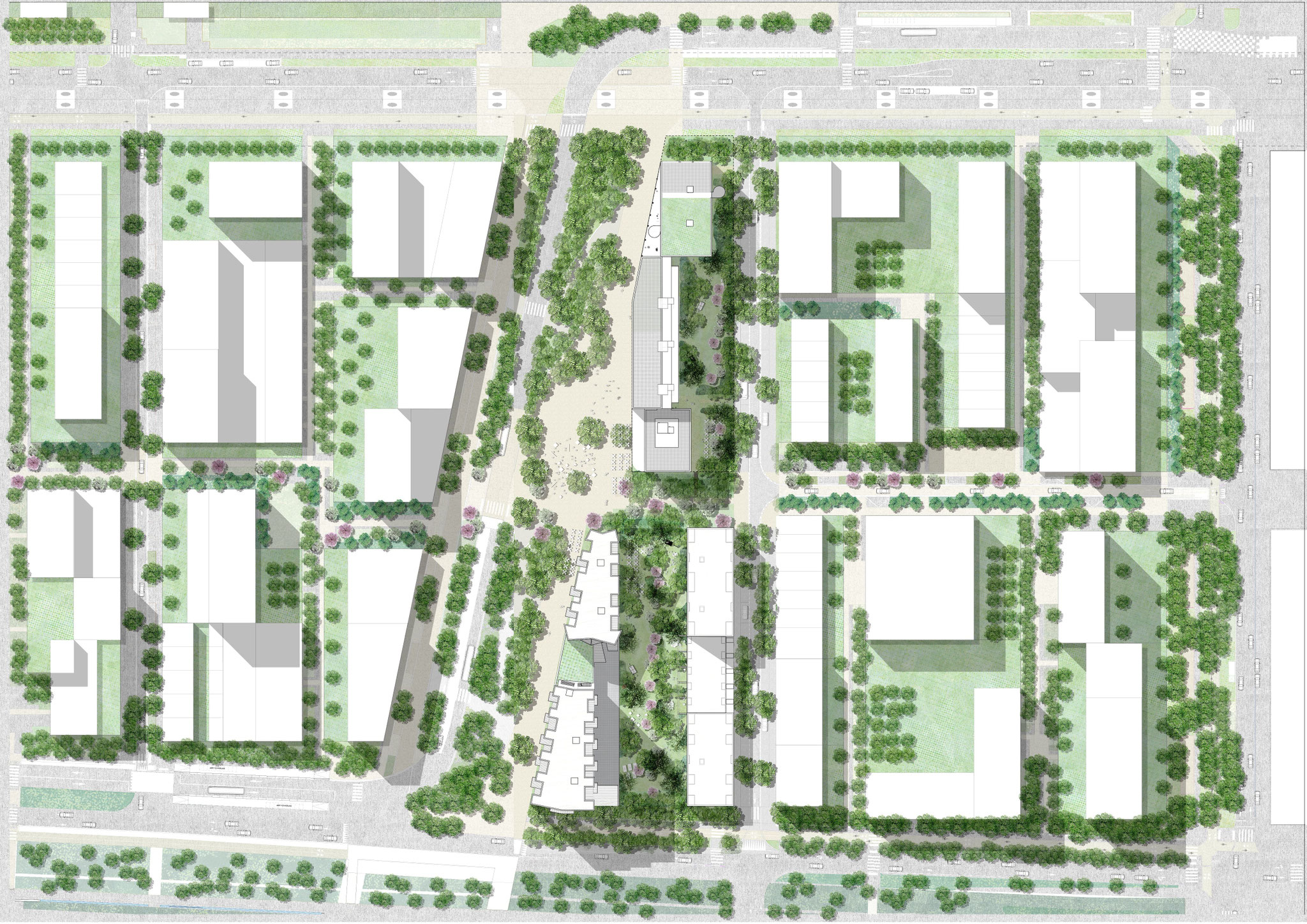 Cette approche souple et ouverte fait de ce point d’articulation le véritable cœur du quartier, un lieu de rencontre entre habitants, activités, nature et architecture.