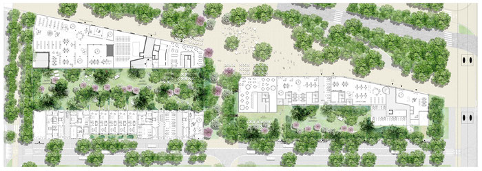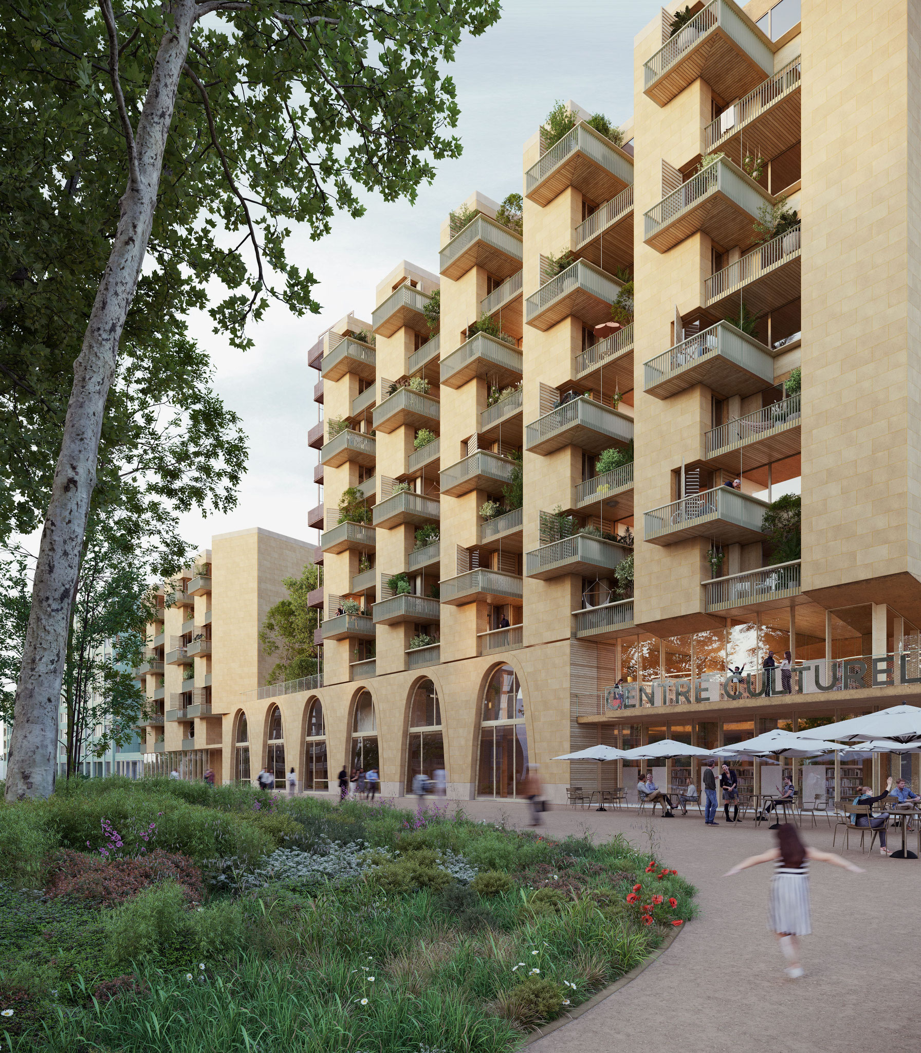 d’autre, des programmes de restauration et d’équipements publics viennent animer les rez-de-chaussée et renforcer le caractère vivant de cet espace.